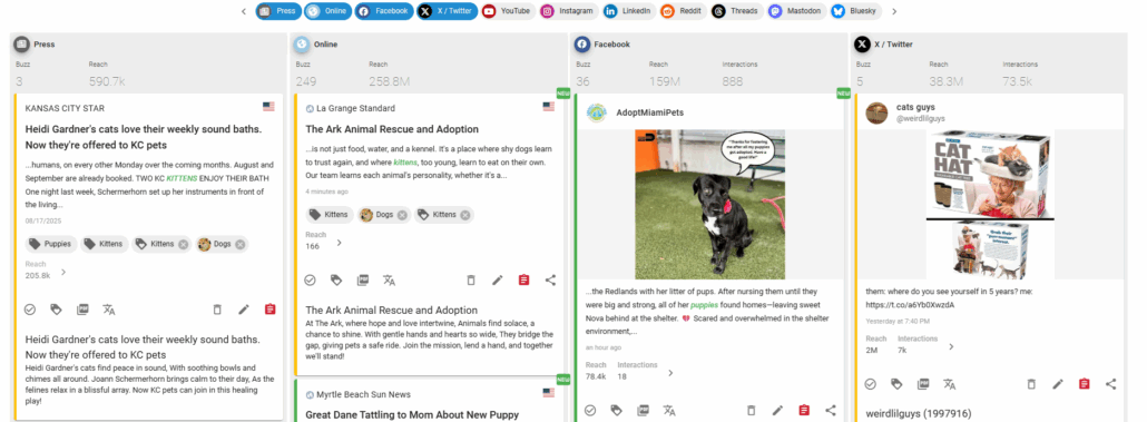 Relying on only one or two media channels in your monitoring means leaving a massive blind spot in your media strategy. For example, a newspaper article your organization is mentioned in might spark a discussion thread on Reddit or a wave of Tweets that dramatically shifts the narrative. Multi-channel monitoring helps you see the entire lifecycle of your message, from first mention to final ripple.